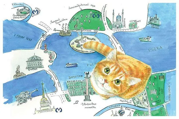 Какая прелестная открытка! Как увидела ее, сразу же добавила в корзину и заказала. Любимый атмосферный Санкт-Петербург, любимое домашнее животное! Нарисована карта очень нежно, приятно, художественно. Вроде бы такой маленький сувенир, а так приятно на него смотреть! И на полке прекрасно смотрится, и в книге, если использовать открытку в качестве закладки. Рекомендую!