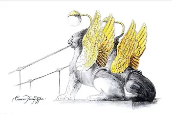 Открытка 10*15см тушь СПб Банковский мост