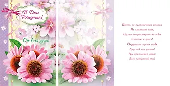 Покупала эту открытку в подарок для бабушки на День Рождения. Она такая нежная, красивая. Оформление превосходное! Картон тоже хороший, плотный. А самое главное, в этой открытке такое замечательное поздравление, такие тёплые слова! И есть место для собственных пожеланий имениннице. В итоге, моя бабушка не осталась равнодушной. А ещё она отметила, что на обложке как раз её любимые цветы. В общем, всё сошлось.
