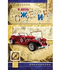 Открытка А5 В день рождения (автомобиль) 5-08-0072