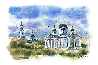 Открытка «Арзамас. Воскресенский собор», акварель, автор В. Метелица