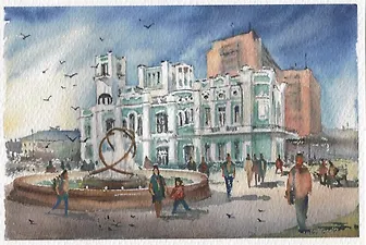 Вашему вниманию предлагается авторская открытка "Астрахань. Площадь перед ЗАГСом".