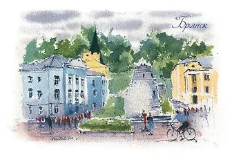 Открытка «Брянск. Славянская площадь», акварель, автор В. Метелица