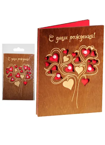 Оригинальная поздравительная открытка ручной работы, выполненная из дерева, станет теплым и исключительно уместным приложением к любому подарку.