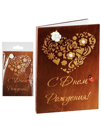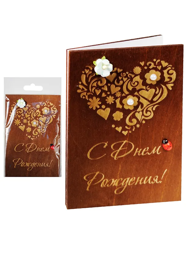 Оригинальная поздравительная открытка ручной работы, выполненная из дерева, станет теплым и исключительно уместным приложением к любому подарку.