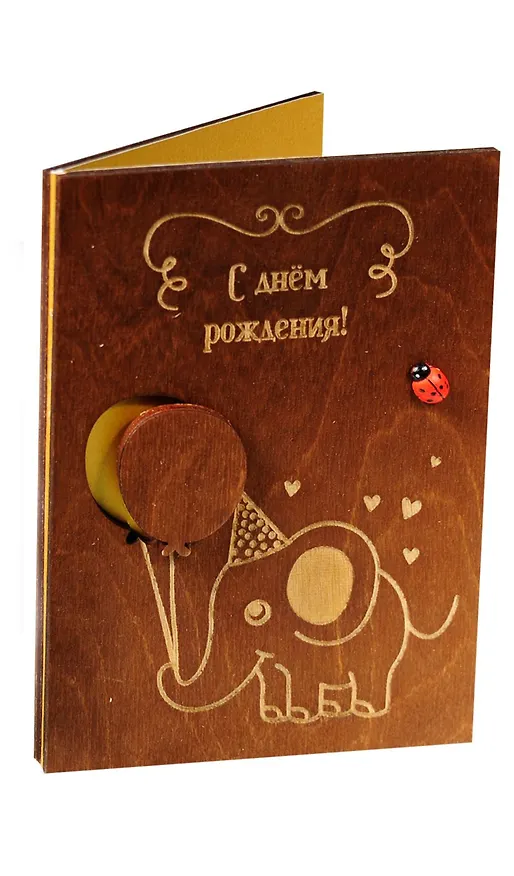 Оригинальная поздравительная открытка ручной работы, выполненная из дерева, станет теплым и исключительно уместным приложением к любому подарку.