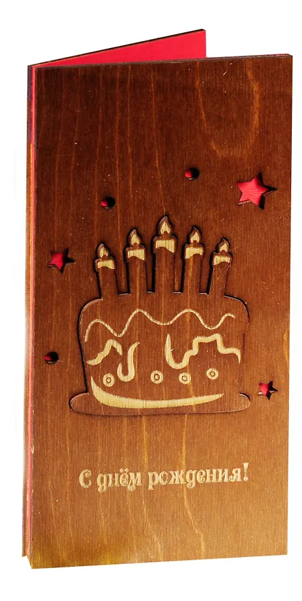 Оригинальная поздравительная открытка ручной работы, выполненная из дерева, станет теплым и исключительно уместным приложением к любому подарку.