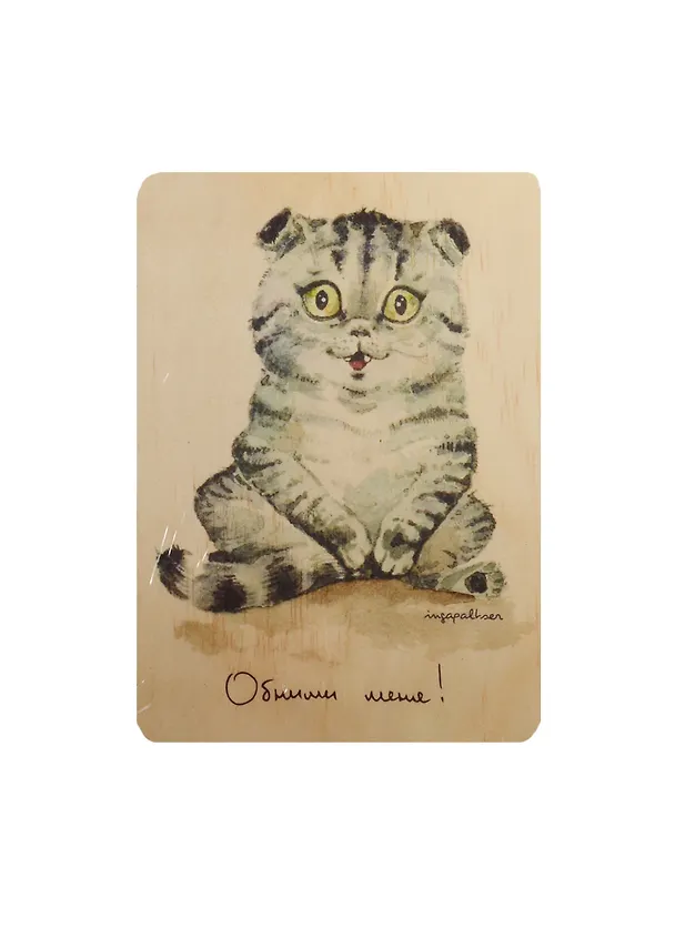 Открытка деревянная Котик Обними меня!