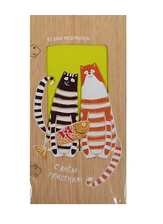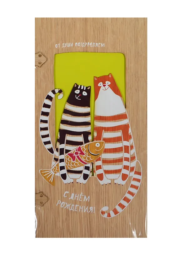 Открытка деревянная С днем Рождения Коты с рыбой (31621-26) (Эстетика)