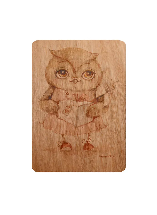 Открытка деревянная Сова Подарочек (Инга Пальцер)