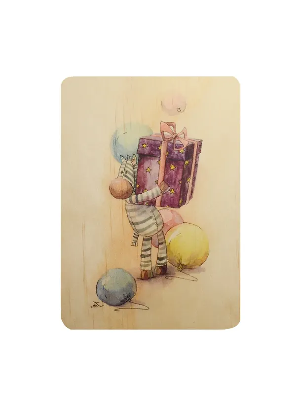 Открытка выполнена из натурального шпона различных пород деревьев.