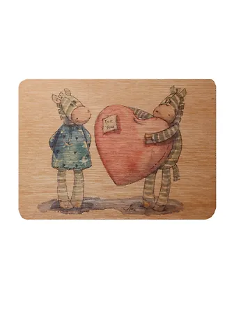 Открытка деревянная Зебры с сердцем For you