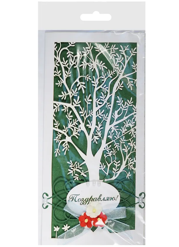 Открытка ДК Поздравляем Белое дерево на зеленом фоне