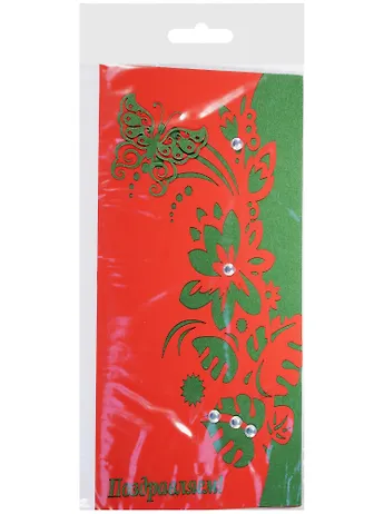 Открытка ДК Поздравляем Красные цветы на зеленом фоне