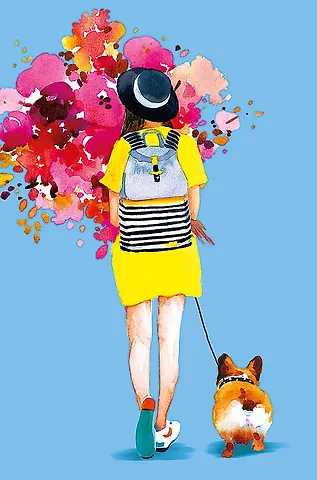 Открытка двойная Девушка с собакой код Ф 0572.972