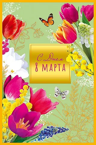 Открытка двойная С Днем 8 марта код Н 0820.334