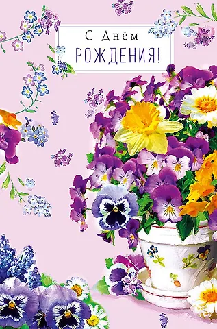 Открытка двойная С днем Рождения! код Ф 0164.487