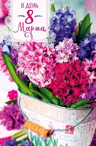 Открытка двойная В День 8 Марта (пустая) код Ф 0820.346