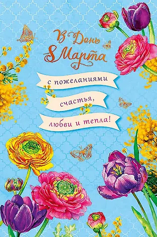 Открытка двойная В День 8 Марта (пустая) код Н 0820.332