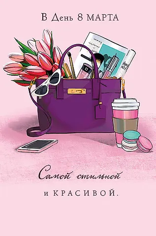 Открытка двойная В день 8 марта Самой стильной и красивой. код Ф 0820.353