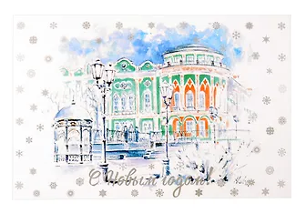 Тёплое новогоднее поздравление легко отправить по почте, вручить лично или вложить в подарок как приятную деталь. Открытка «С новым годом Екатеринбург Дом Н.И. Севастьянова» от Орех Сувениры оформлена акварельной иллюстрацией узнаваемого городского символа и праздничной надписью. На обороте достаточно места для ваших пожеланий — подойдёт для посткроссинга, коллекции открыток и как небольшой сувенир из Екатеринбурга.