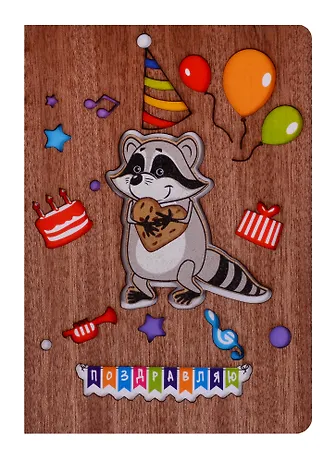 Открытка Енот с печенькой Поздравляю (дерево) (otk001)
