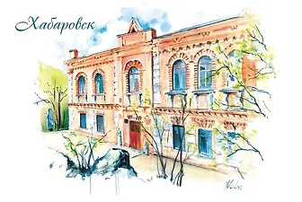 Открытка «Хабаровск. Музей археологии», акварель, автор А. Воля