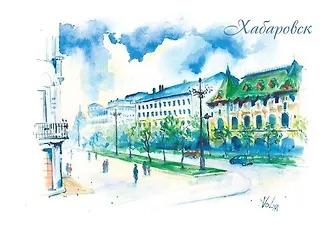 Открытка «Хабаровск. Ул. им. Н.Н. Муравьева-Амурского», акварель, автор А. Воля