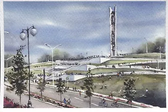 Открытка. Ижевск акварель. "Монумент "Дружба народов"