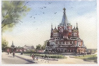 Свято-Михайловский собор, изображенный на открытке-один из красивейших в России.