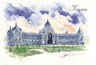 Вся серия этих открыток просто волшебная. Рисунок выглядит как акварельный. Чудный подарок для казанцев и гостей. 10/10!
