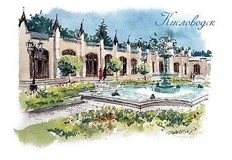 Замечательная открытка с видом фонтана "Лягушки" на фоне Нарзанной галереи Кисловодска! Сделана по акварели Виктории Метелицы на дизайнерской структурированной бумаге. Я живу в Кисловодске, с удовольствием подпишу и отправлю открытку друзьям или вложу в подарок из Кисловодска.