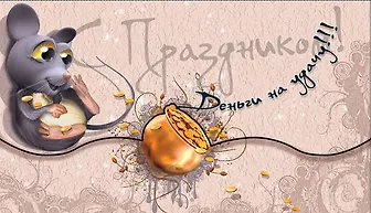 Открытка-Конверт для денег С Праздником! Мышка [РЕ221-00012]
