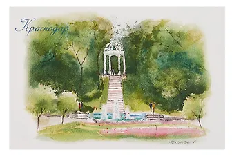 Открытка «Краснодар акварель Городской сад и ротонда» — тёплый городской сувенир для тех, кто любит южные прогулки. Лёгкая акварельная иллюстрация передаёт атмосферу Городского сада и узнаваемой ротонды, поэтому открытку приятно подарить, вложить в книгу или поставить на рабочем столе. Подойдёт для поздравления, короткого письма и коллекции открыток о путешествиях.