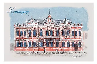 Тёплая открытка «Краснодар акварель. Историко-археологический музей-заповедник имени Е.Д. Фелицына» подойдёт как сувенир из поездки и приятное дополнение к подарку. Акварельная иллюстрация передаёт атмосферу города и делает открытку заметной в коллекции. На обороте предусмотрено место для короткого послания и адреса — можно отправить по почте или вручить лично.