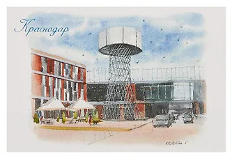 Открытка "Краснодар акварель Сетчатая водонапорная башня В. Г. Шухова"