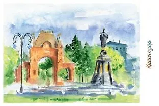Открытка сувенир Краснодар акварель «Екатерининский сквер».