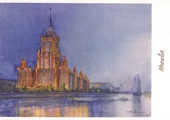 Вашему вниманию предлагается открытка "Москва. Высотка на Кутузовском проспекте", художник Кирнос О.