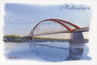 Открытка Новосибирск акварель Бугринский мост