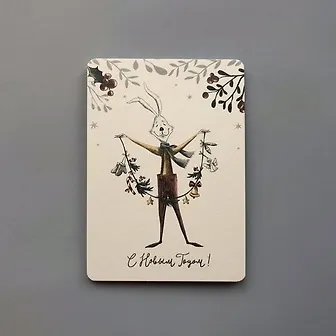 Открытка одинарная 14,5*10см Кролик с гирляндой