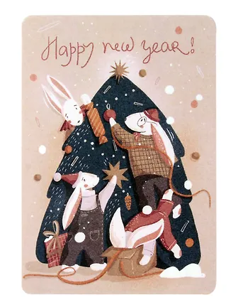 Открытка одинарная 14,5*10см Зайчики украшают елку