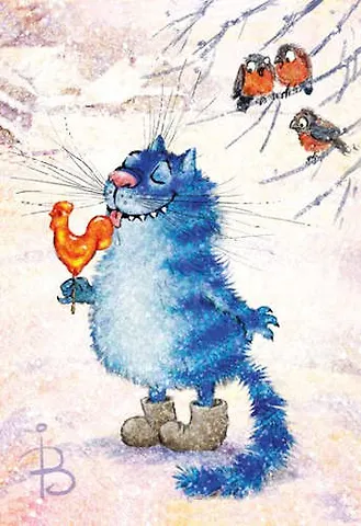 Открытка одинарная Кот и петух Зенюк Р. 16*11см 1078