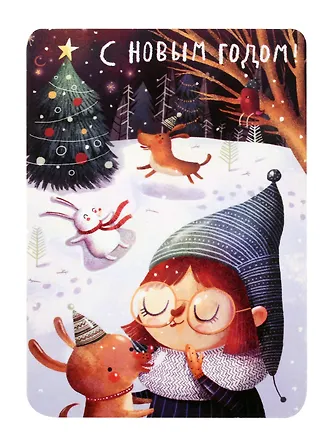 Открытка одинарная Новогодняя девочка 14,5*10см