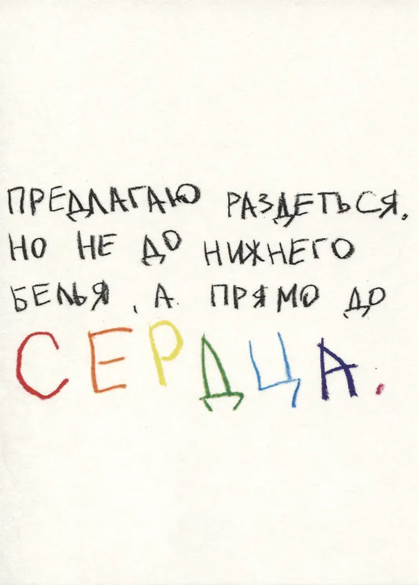 Очень нравится данная серия открыток, можно легко подобрать подходящую открытку для себя или в подарок близким из широкого ассортимента. Качество превзошло ожидания: надпись напечатана яркими красками (оригинально выделили слово «сердца» на послании, придав ему чувственный и интимный оттенок), картон плотный с матовым немного текстурным покрытием, на оборотной стороне имеется специально отведенное место для написания поздравления. И все это за доступную цену! Открытка пришла со склада упакованной в прозрачный пленочный пакет, что обеспечило ей защиту при доставке, спасибо за заботу о сохранности продукта!