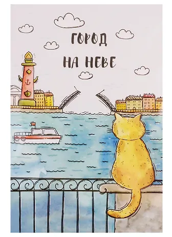 Открытка одинарная с конвертом "Город на Неве" (Ростральная колонна, кот)