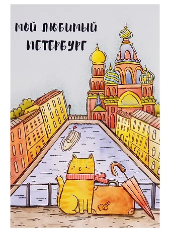 СИЛЬВЕРПРИНТ Открытка одинарная с конвертом "Мой любимый Петербург" (Спас, кот, чемодан)