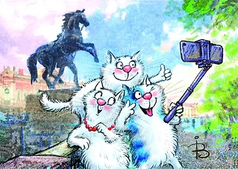 Чудесный кадр, чудесный ракурс! Мне кажется, что каждый житель Санкт-Петербурга или турист, который побывал в городе на Неве фотографировался на фоне хотя бы одного из коней на этом мосту, как и эти два кота с кошечкой! Поэтому можно приобрести такую красивую открытку не только в коллекцию филокартиста, но и в качестве сувенира другу/подруге, с которыми вы ездили в путешествие, а также просто на память для себя любимых)