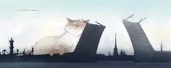 Открытка одинарная СПб Кот и Петропавловская крепость худ.Чувиляева