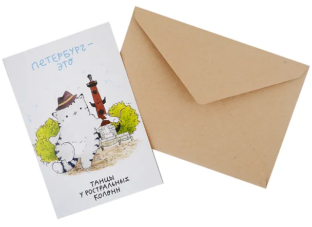 Открытка одинарная СПб Танцы у ростральных колонн. Кот Пирожок, худ. И.Гаас