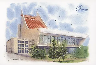 Открытка Омск акварель Музыкальный театр